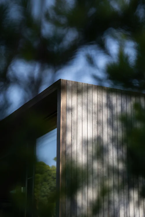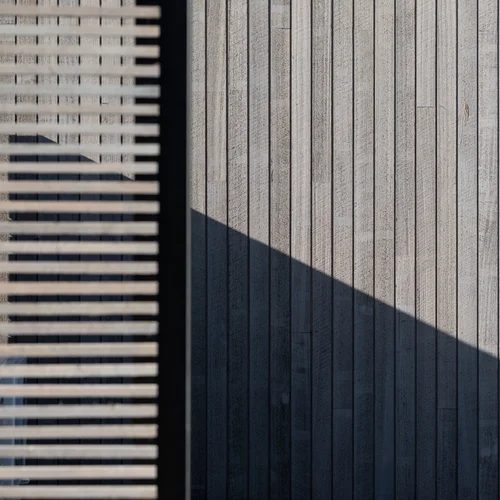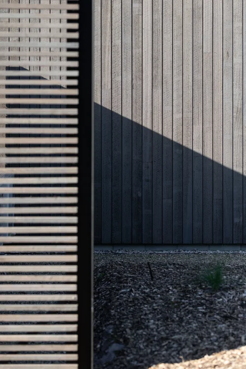 Vertical windows punctuate the northern facade to focus upwards whilst ameliorating the impact of the Northern neighbour and its large operable facade. To the south a vacant block presents an unknown future and window boxes project to facilitate glancing views east and west via screening should it be required. To the west, timber sliding screens attend to sun and ember control but importantly modulate light and view where it is most available.